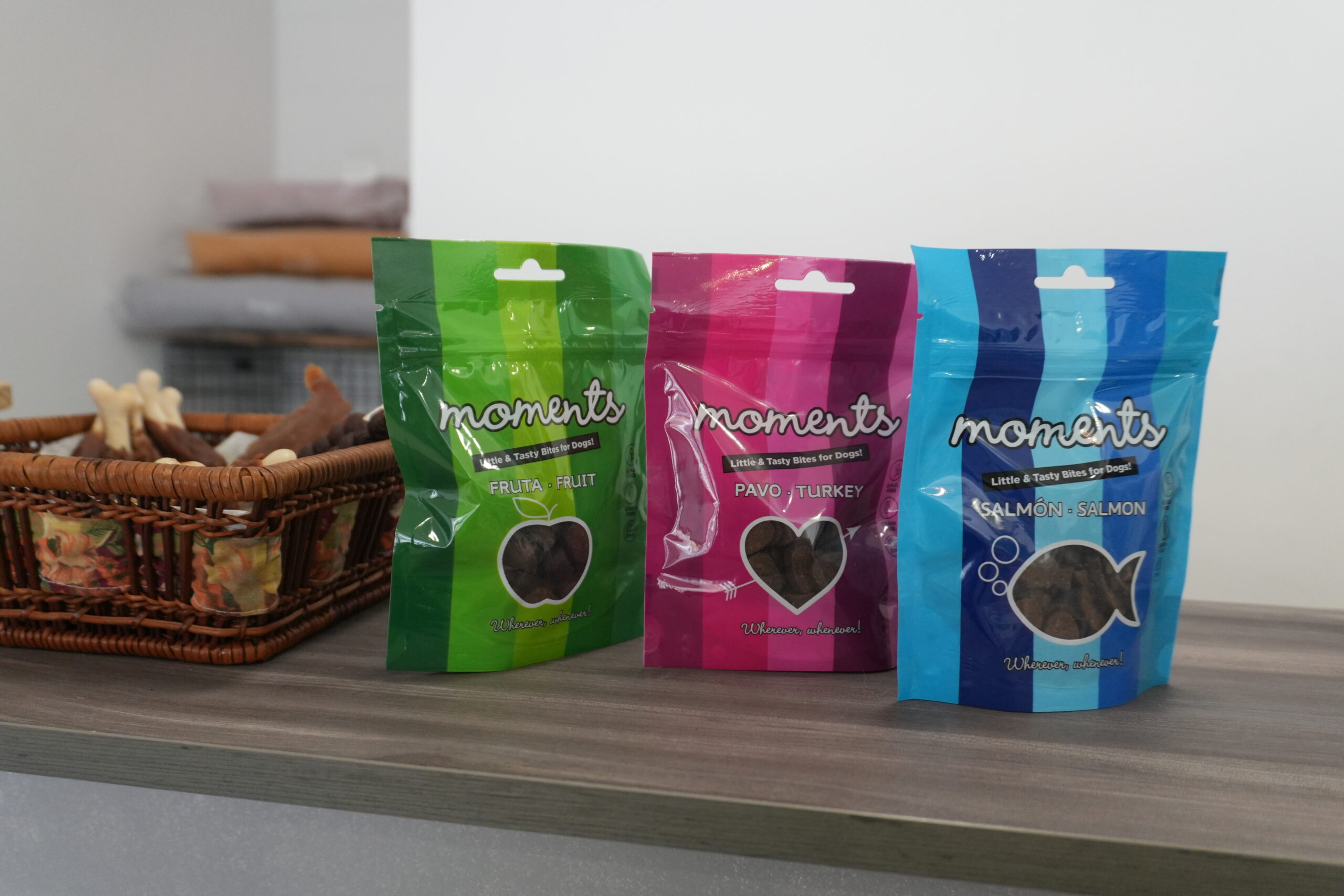 Moments brand dog snacks, ideal as a daily reward or treat between meals. Small, soft, and tasty bites, easy to chew and suitable for dogs of all breeds. Available in various flavors: Fruit, Turkey, and Salmon.New product. Perfect for training, positive reinforcement, or simply to please your furry friend.