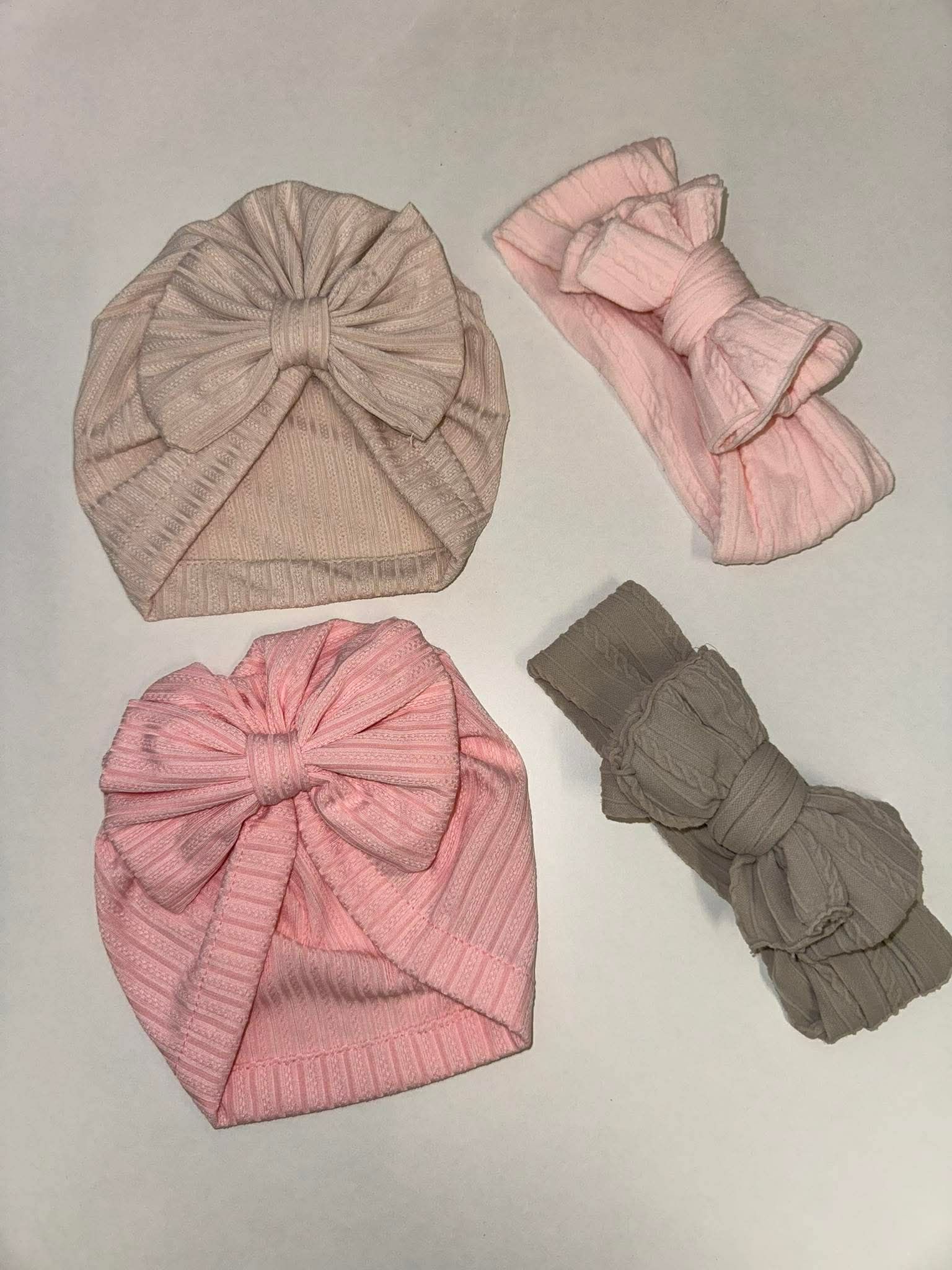 Turbans and headbands for babies in soft and comfortable fabric, with a delicate decorative bow. Perfect for complementing the little ones' outfits, giving an adorable and elegant touch. Available in various colors.