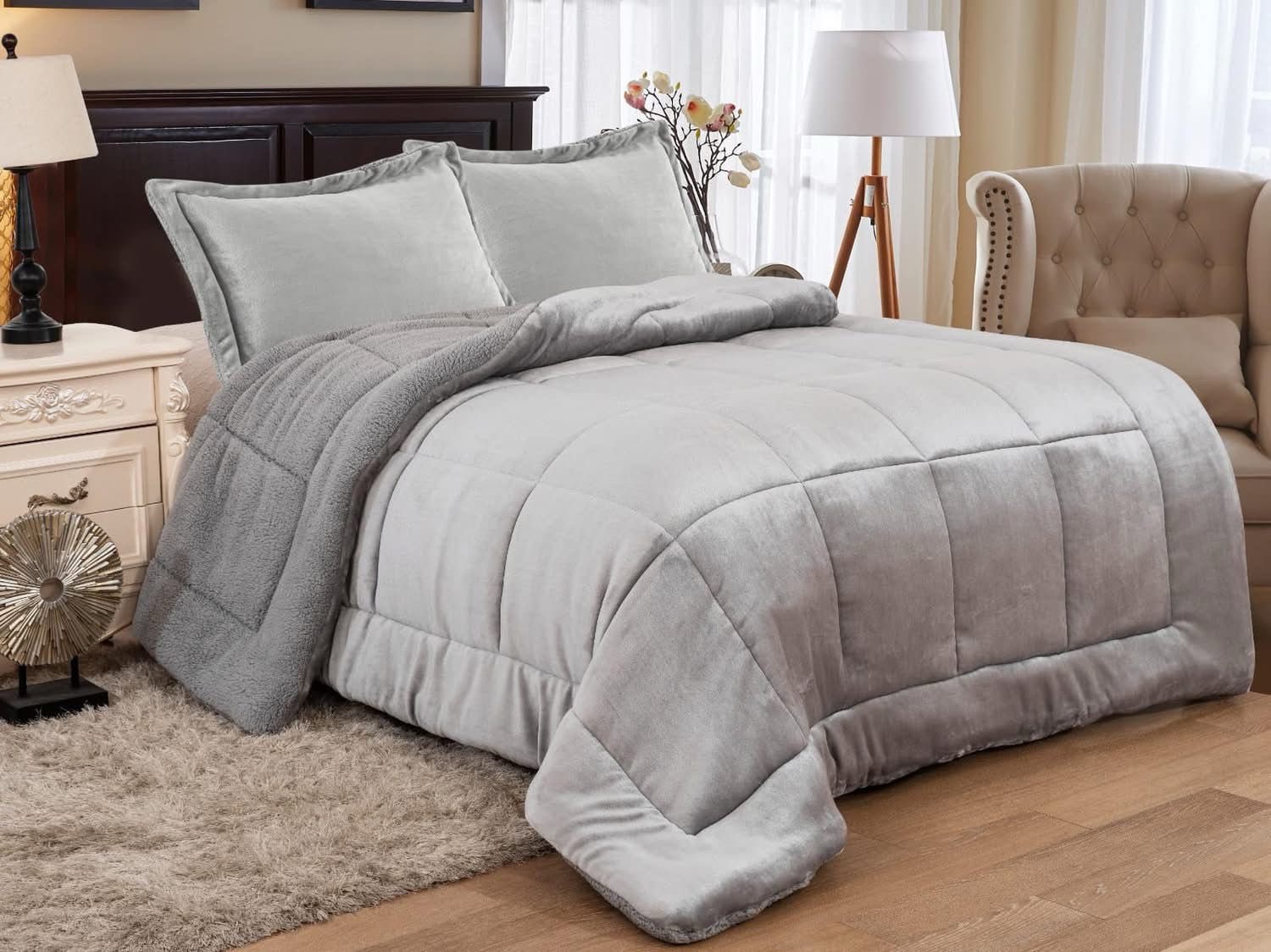 Edredão Cinza com Almofadas (Conjunto)